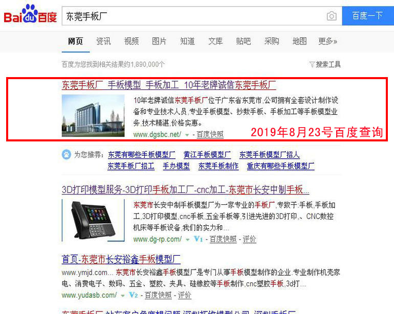 手板廠 百度(PC)自然排名第1名